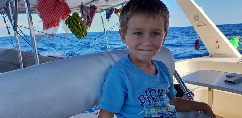 Staś – fan Polski i polskości, nasz pierworodny syn, we wrześniu 2019r. skończył 6 lat. Jest bardzo dzielnym i kochanym chłopcem, dumnym ze swojego pochodzenia! Uwielbia skakać na dziobie na dużych falach i wypatrywać delfiny, kocha grać w piłkę nożną i kąpać się w morzu… Będzie robił reportaże z naszej podróży…