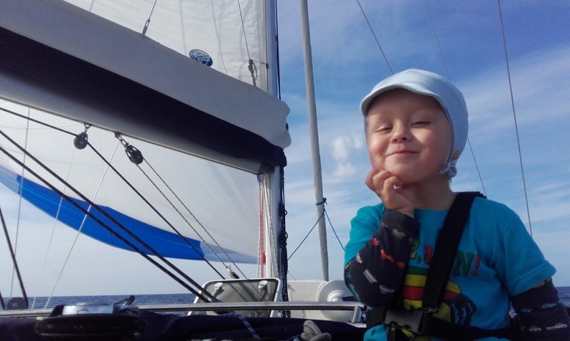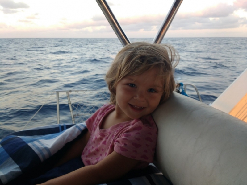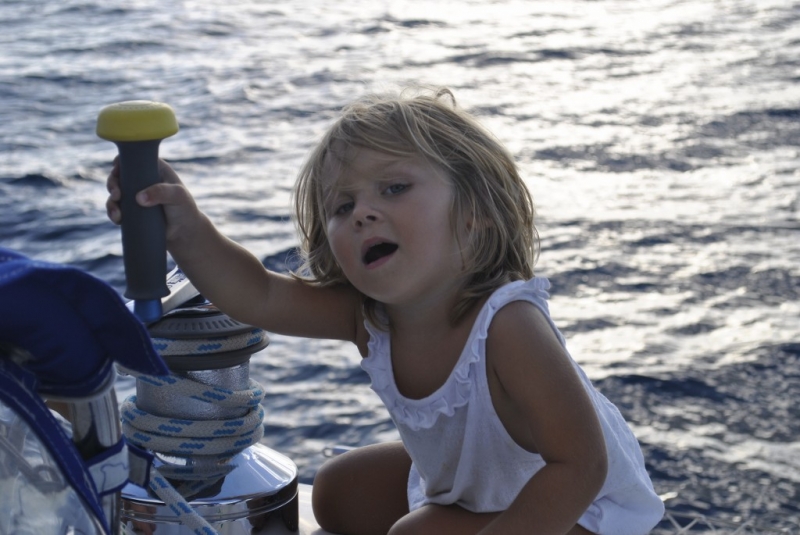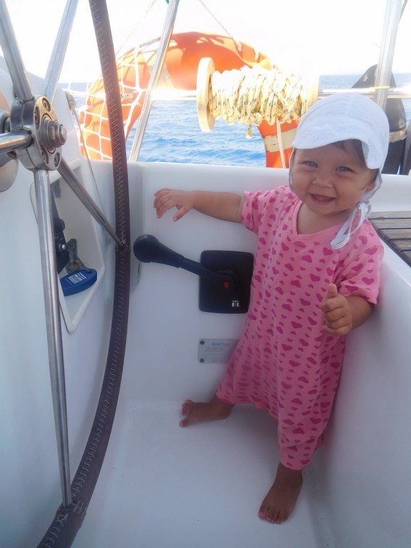 Ania – nasz najmłodszy załogant, w sierpniu 2019r. skończyła 3 lata. Jest zawsze uśmiechnięta, radosna, pozytywnie nastawiona, tryska energią i gdzie się człowiek nie obróci – nasza Ania jest obok 🙂 Kocha pływać w morzu, wypatrywać delfiny na dziobie, a przede wszystkim… – uwielbia być blisko Mamy i Taty.